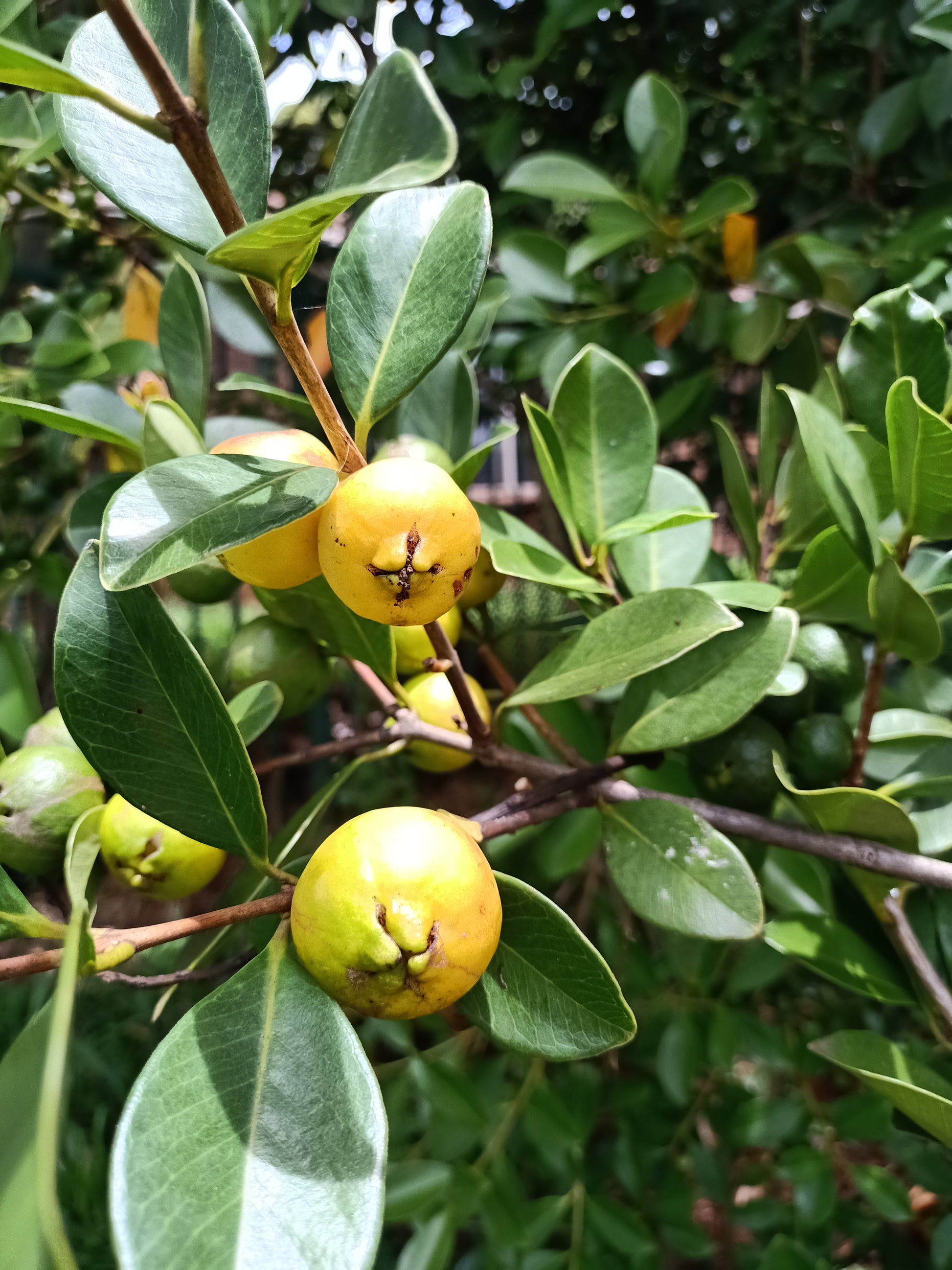 The fruit of the Lemon Guava is typically green when unripe, and turns yellow when ripe. The flesh is creamy white with small seeds, and has a tangy, lemon-like flavor, which is where it gets its name. The fruit is rich in vitamin C, fiber, and antioxidants, and is used in a variety of culinary applications, including juices, jams, and desserts.